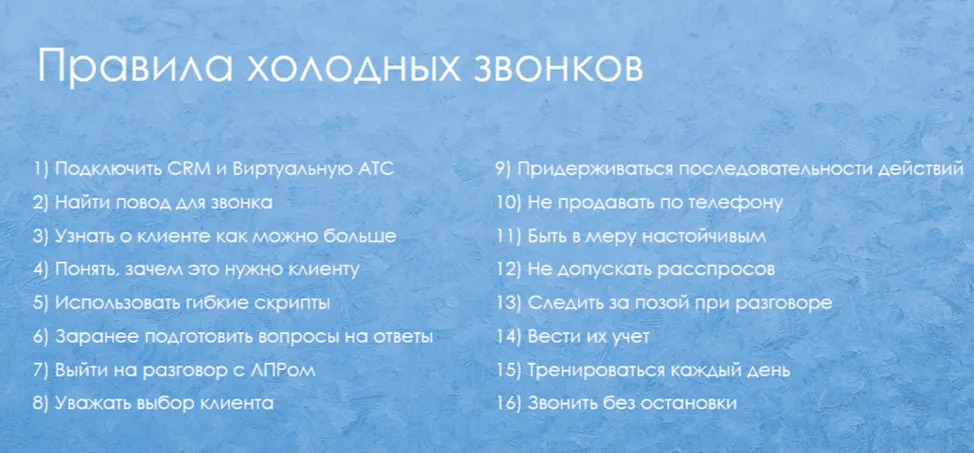 Для того, чтобы каждый холодный звонок был успешный, необходимо: